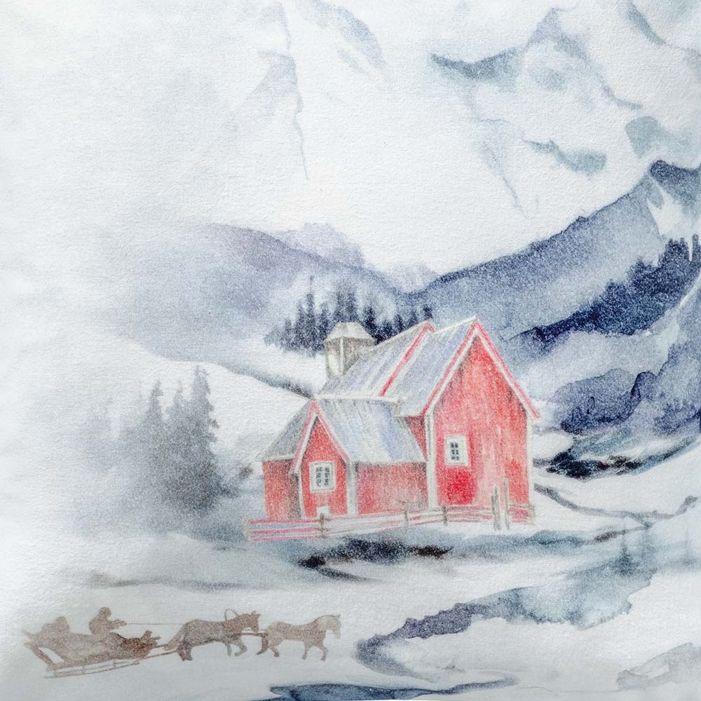 Der Dekokissenbezug „Sleigh Ride“ in der Farbe Schnee entführt dich in eine verschneite Winterwelt voller Geborgenheit. Das feine Aquarellmotiv zeigt eine rote Hütte vor winterlicher Bergkulisse, ergänzt durch einen Pferdeschlitten, der behutsam durch die Schneelandschaft gleitet – ein Bild voller Ruhe, Wärme und Nostalgie.