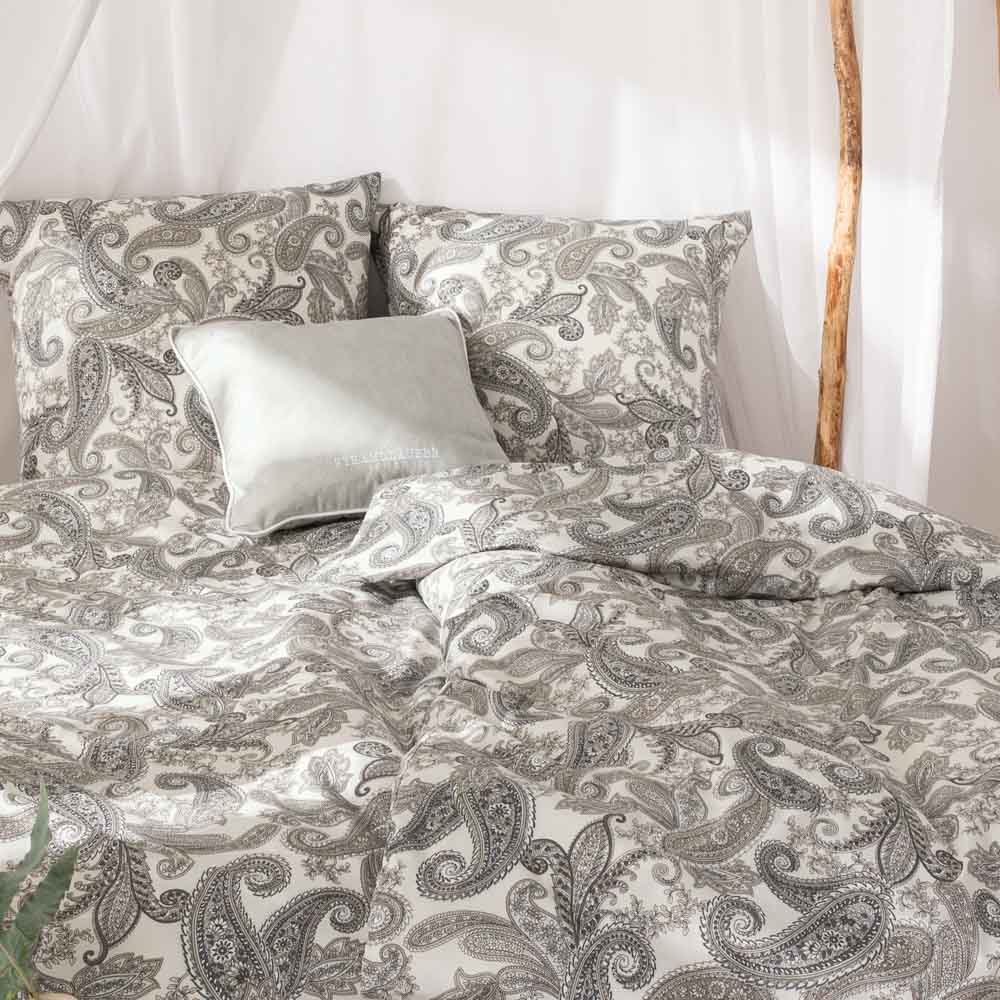Wenn sich sanfte Sandfarben mit schwungvollen Paisley-Tropfenformen vereinen, dann ist die Zeit für die Bettwäsche Aurelius gekommen. Das behaglich anmutende Set sorgt in allen Räumlichkeiten für große Augen. Denn während man aus einiger Entfernung zunächst den dezenten Farbton wahrnimmt, bleibt bei näherer Betrachtung der Blick an den vielen Details des Musters hängen – und sorgt für Staunen auf ganzer Linie. Batist wird aus 100% echt ägyptischer Mako-Baumwolle (Nm 120/1) hergestellt. Dies bedeutet, dass 120 Meter des verwendeten Garns insgesamt nur 1 Gramm wiegen – ein Zeichen echter Estella® Markenqualität! Das feinfädrige, dichte Gewebe ist besonders leicht und hautsympathisch. Damit ist Batist geradezu prädestiniert für die Verwendung in den heißen Sommermonaten.