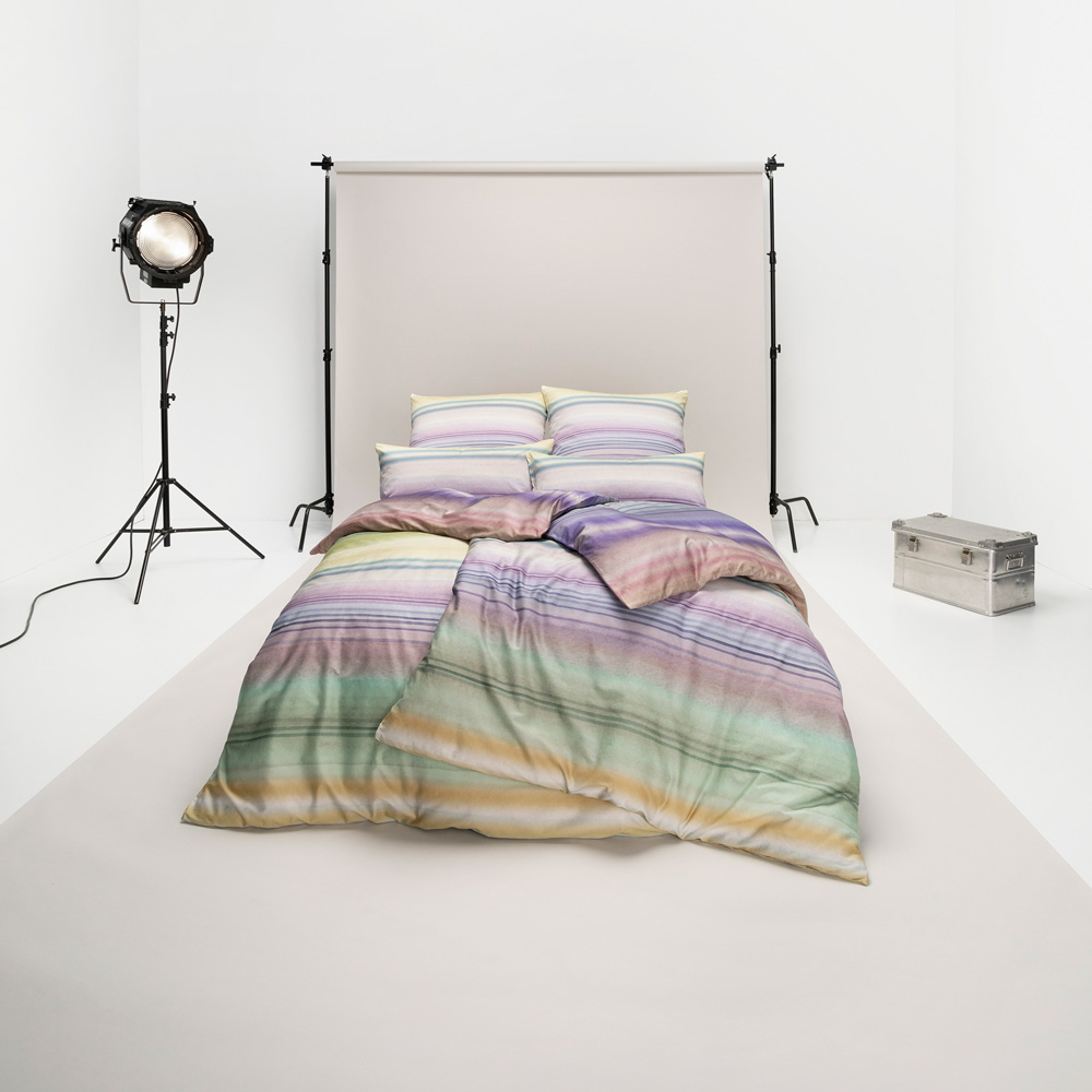 Ein Regenbogen in Pastell begrüßt Sie auf den Kissen- und Bettdeckenbezügen der Garnitur Bright. Das quergestreifte Bettwäscheset fügt sich dank seiner sanften Farbgebung ausgezeichnet in helle Schlafräume und bunte Kinderzimmer ein. Dabei greift es gleich mehrere Nuancen seiner Umgebung auf. So sorgt Bright schon nach dem ersten Aufziehen für eine harmonische Gesamtoptik in all Ihren Räumen.