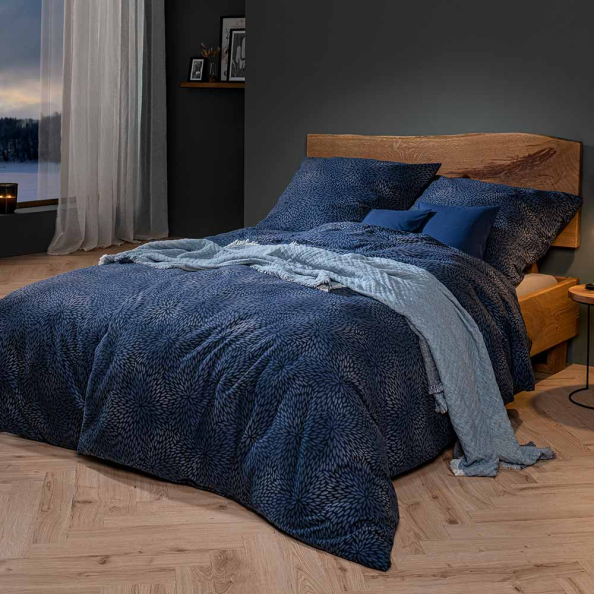 Von den Bezügen der Bettwäsche Rovigo möchte man die Augen kaum wieder abwenden. Denn nicht nur der tiefblaue Grundfarbton Indigo, sondern auch das beinahe schon hypnotisch schöne Muster der edlen Garnitur zieht seine Betrachter in den Bann. Unzählige abstrahierte und fein schattierte Blütenblätter legen sich über die komplette Fläche des Stoffes. So entsteht ein wunderbar beruhigendes Gesamtbild, das Ihre Schlafoase zum Hingucker im eigenen Zuhause macht. Flanell ist der Stoff mit dem besonderen Oberflächenflausch. Das einseitig aufgeraute Material eignet sich ausgesprochen gut für die Verwendung in der kalten Jahreszeit. Weich wie Samt und edel wie Seide überrascht das Gewebe mit seiner spürbaren Leichtigkeit. Flanell-Bettwäsche wird daher auch als Fein- oder Edelflanell bezeichnet, ist kuschelig weich sowie sehr hautsympathisch. Unsere Flanell- Bettwäsche wird aus Baumwolle (Nm 34/1, supergekämmt) hergestellt. Dies bedeutet, dass 34 Meter des verwendeten Garns insgesamt nur 1 Gramm wiegen.