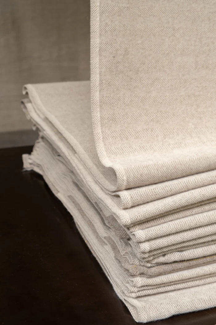 Fein und edel wie ein Maßanzug. Ein herrlich weiches Tuch aus reiner Schurwolle im klassischen Fischgrat-Muster mit gekämmter Franse. Erhältlich in den Farben moosgrün, himmelblau, friesisch-blau, sandbeige und ziegelrot – jeweils gewebt auf feiner mongolischer Merinowolle in wattgrau. Ein fließend weicher Griff mit glanzvollem Charakter. So schön kann Wolle sein.