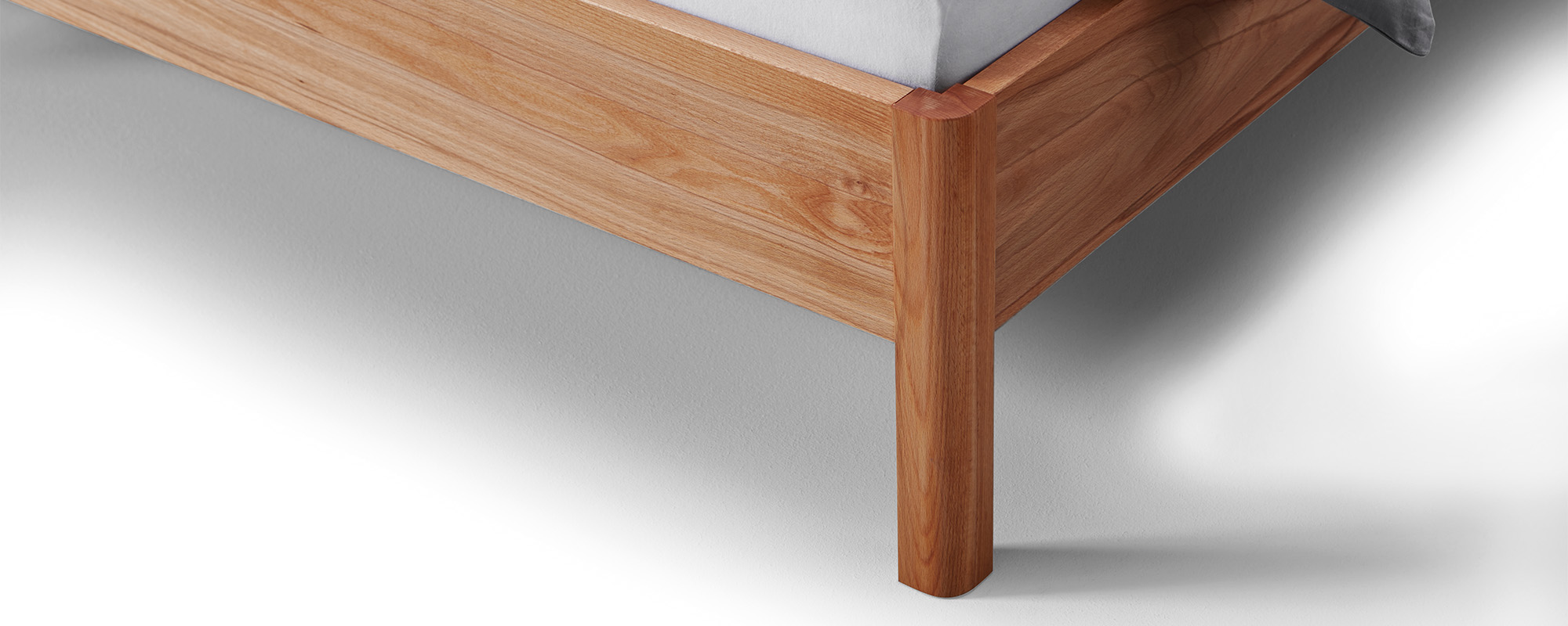Fast archaisch, schlank und leicht ist das komplett metallfreie Bett BASIC. Die gebogene Rückenlehne gibt es in zwei Varianten und auch bei den Beinen können Sie gestalterisch Einfluss nehmen: Mit einem Radius von 20 mm an den Beinaußenkanten wird BASIC noch mehr zum Handschmeichler. Die filigrane Bettenkonstruktion ist sehr stabil und bringt den Charme des massiven Holzes besonders gut zur Geltung. Eine Wohltat für die Sinne und unser Beitrag für Ihr schönes Schlafzimmer.