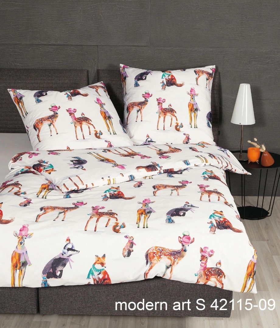 Egal ob Jung oder Alt – mit der Janine Mako-Satin Bettwäsche modern art S 42115, aus der aktuellen Herbst-/ Winterkollektion von Janine, kommt jeder auf seine Kosten. Anmutige Rehe, flinke Eichhörnchen, neugierige Hasen und viele weitere eindrucksvolle Tiere verteilen sich auf dem schneeweißen Hintergrund der Bettwäsche. Dabei stechen vor allem die eisblauen Schals und pinken Mützen der Tiere ins Auge, welche die Garnitur zu einem besonderen Hingucker werden lässt. Ob zu modernen Einrichtungen oder auch im Kinderzimmer, die Bettwäsche von Janine ist immer ein Blickfang, der Ihr Bett in eine süße Winterpracht verwandelt. Gefertigt ist die traumhafte Garnitur aus hochwertigem Mako-Satin, welches Sie auch in eisigen Nächten mit seiner weichen Textur zum hinein Kuscheln einlädt.