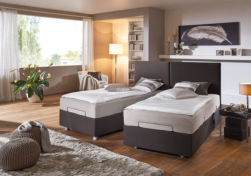- Motorisch höhenverstellbar (Einzelbett +38cm, Duobett +25cm)