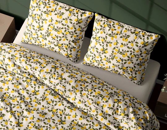Natürliche Bettwäsche mit wunderschönen Zitronen Motiv aus 100% edlem Schweizer Satin. Schöner hochwertiger Digitaldruck als All-Over Bettwäsche, natürlich waschbar bei 60°, Trockner geeignet und mit Reißverschluss.Auf Wunsch kann die Bettwäsche auch mit Knopfverschluß oder Hotelverschluß und ganz individuell nach Ihren Wünschen gearbeitet werden.Die Bettwäsche kommt als Garnitur bei einer Breite von 135cm – 155cm jeweils mit einem Kissenbezug in 80x80cm. Kissen in 70x90cm oder 40x80cm sind natürlich auch möglich. Ab einer Breite von 200cm werden jeweils zwei Kissenbezüge mitgeliefert in 80x80cm.Lassen Sie sich verzaubern. Diese feine Bettwäsche mit zartem Blütenmuster auf hellem Fond wird Sie begeistern. Außer den Standardgrößen sind auch Sondergrößen bestellbar und werden nach Ihren Wünschen angefertigt.