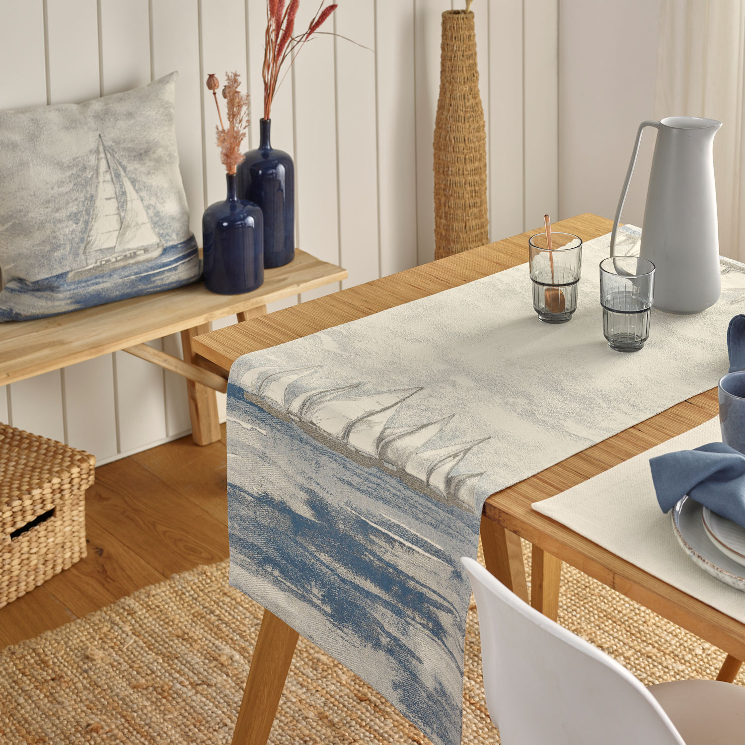 Diese Tischdecke lässt Sie ganz schnell vom nächsten Urlaub träumen. Hören Sie auch schon die Möwen rufen, das Meer rauschen und den Sand unter den Füssen knirschen? Dann holen Sie sich dieses Sommhighlight nachhause.